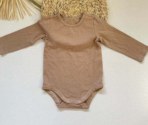 بادی آستین کوتاه نخ پنبه بچگانه رنگ خاکی برند وارداتی H&M