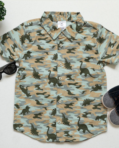 پیراهن آستین کوتاه نخی پسرانه طرح دایناسور وارداتی