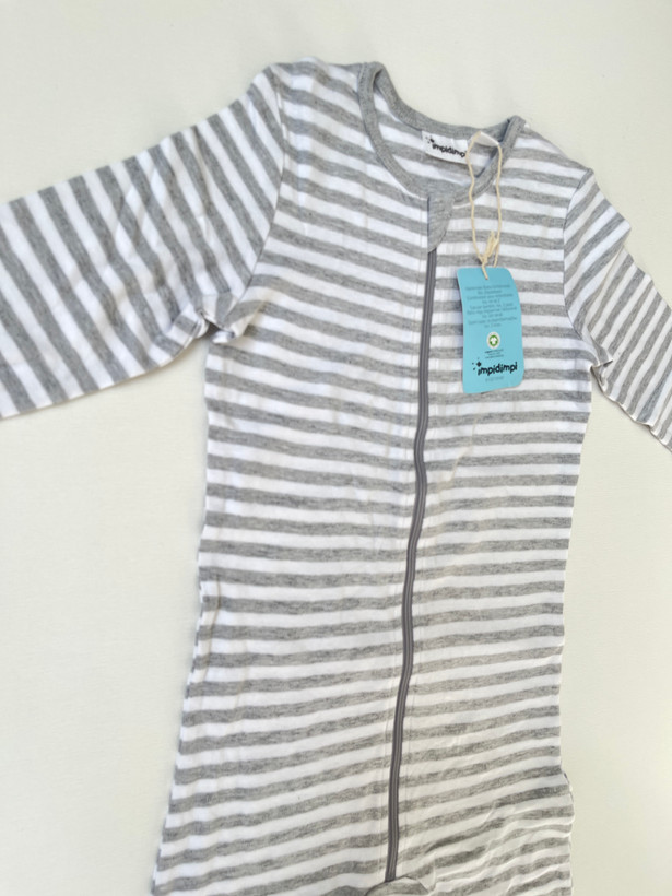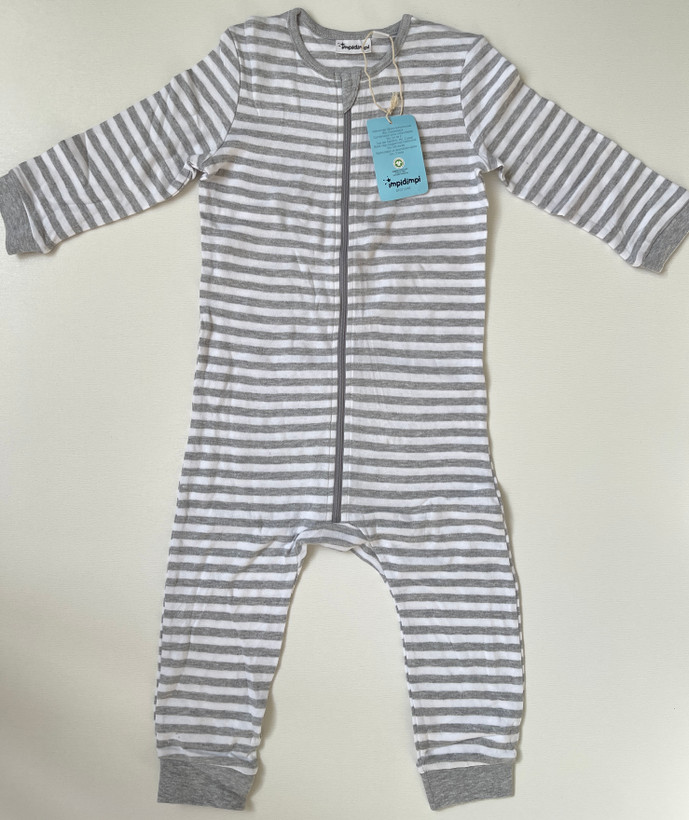 سرهمی بچگانه نخ پنبه بدون جوراب زیپی طرح راه راه طوسی برند Impidimpi