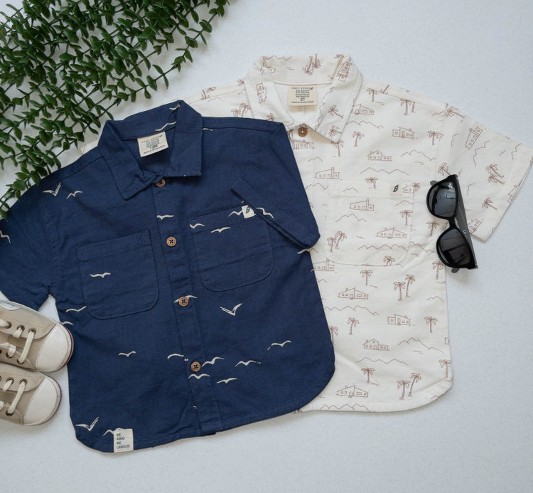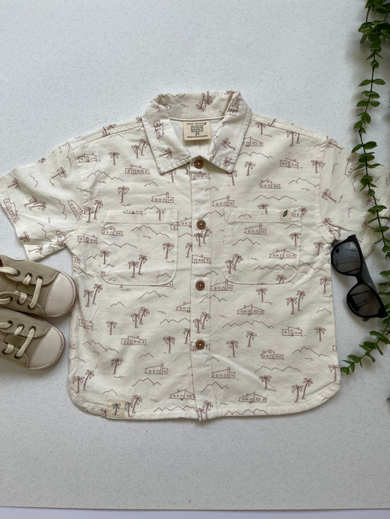 پیراهن کتان آستین کوتاه پسرانه هاوایی برند easey_peasy