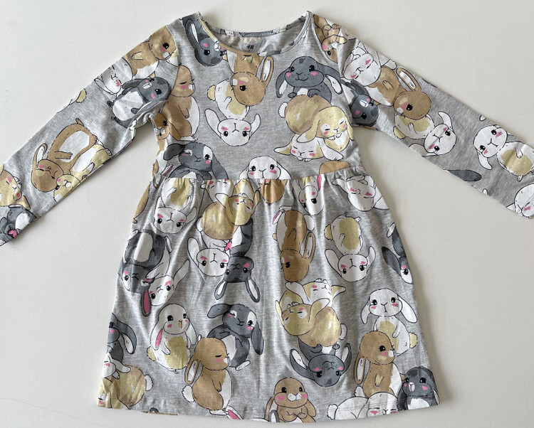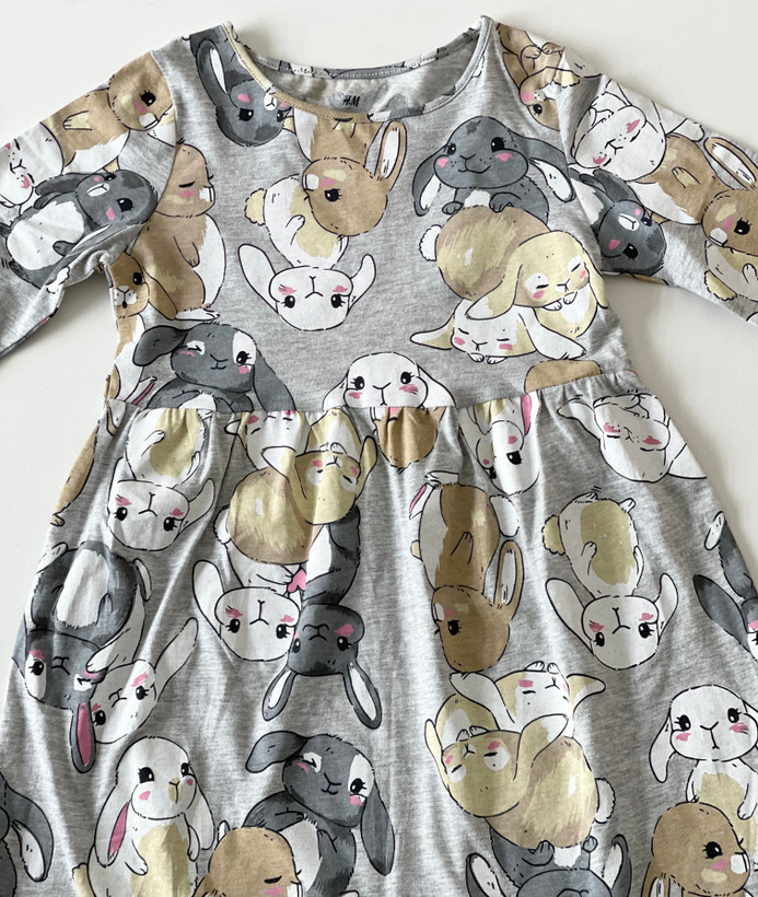 پیراهن دخترانه نخی رنگ طوسی طرح خرگوش برند H&M