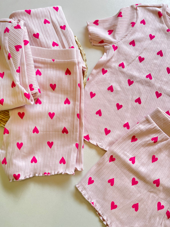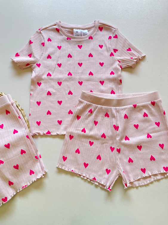 تیشرت شلوارک دخترانه صورتی طرح قلب برند آمریکایی Target